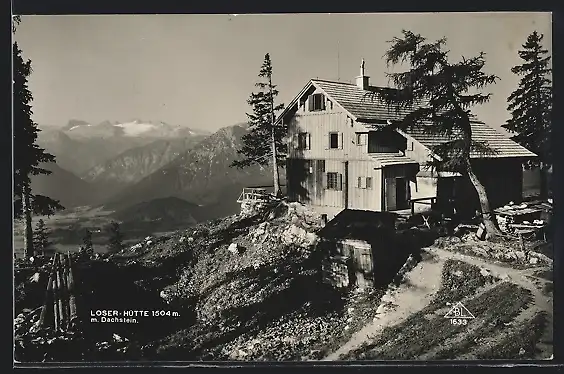 AK Loser-Hütte, Ansicht mit Dachstein