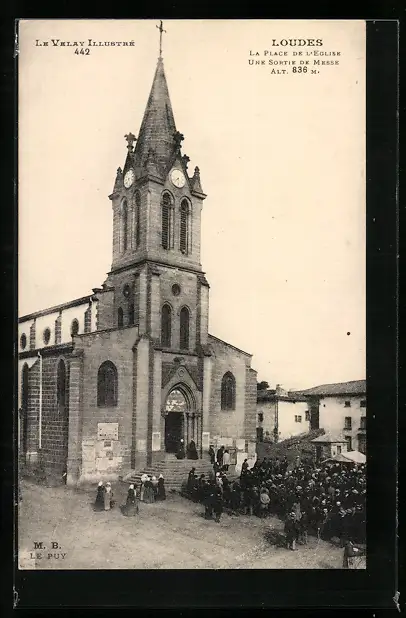AK Loudes, La Place de L`Eglise, Une Sortie de Messe