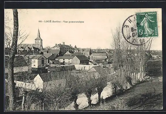 AK Loué, Vue panoramique du village et de l`église