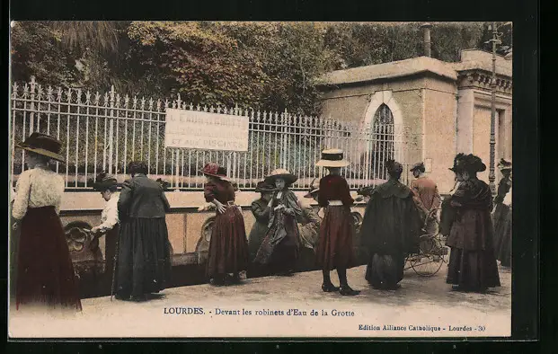 AK Lourdes, Devant les robinets d'Eau de la Grotte