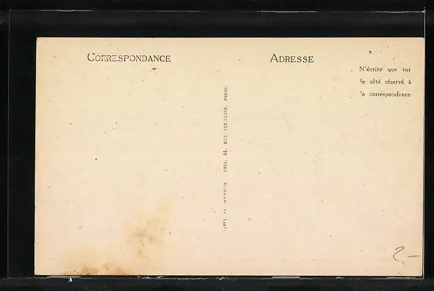 Personenbezogene Daten auf der Rückseite der Karte wurden durch blauen Textmarker unkenntlich gemacht. Die blauen Stellen sind auf die Vorderseite durchgeweicht und wirken sich negativ auf das Postkartenfoto aus