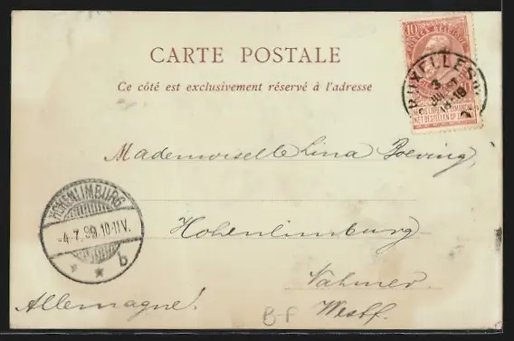 alte Ansichtskarte, gelaufen 1899, Eckknick rechts unten, guter Zustand
