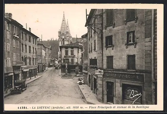 AK Louvesc /Ardêche, Place Principale et Avenue de la Basilique