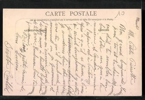 Personenbezogene Daten auf der Rückseite der Karte wurden durch blauen Textmarker unkenntlich gemacht. Die blauen Stellen sind auf die Vorderseite durchgeweicht und wirken sich negativ auf das Postkartenfoto aus
