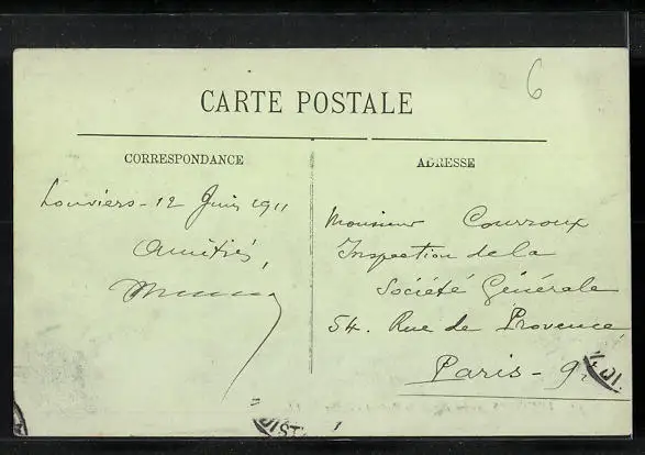 Personenbezogene Daten auf der Rückseite der Karte wurden durch blauen Textmarker unkenntlich gemacht. Die blauen Stellen sind auf die Vorderseite durchgeweicht und wirken sich negativ auf das Postkartenfoto aus