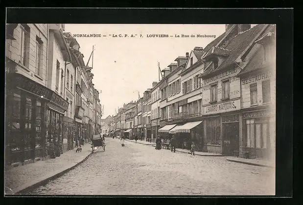 AK Louviers, La rue de Neubourg, Strassenpartie