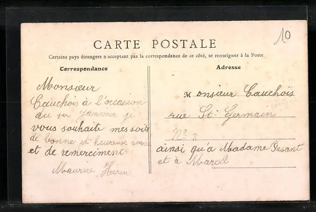 Personenbezogene Daten auf der Rückseite der Karte wurden durch blauen Textmarker unkenntlich gemacht. Die blauen Stellen sind auf die Vorderseite durchgeweicht und wirken sich negativ auf das Postkartenfoto aus