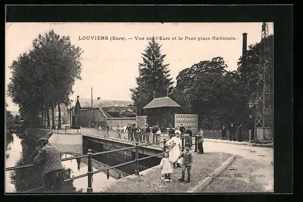 AK Louviers, Vue sur l`Eure et le Pont place Nationale