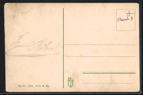 Personenbezogene Daten auf der Rückseite der Karte wurden durch blauen Textmarker unkenntlich gemacht. Die blauen Stellen sind auf die Vorderseite durchgeweicht und wirken sich negativ auf das Postkartenfoto aus