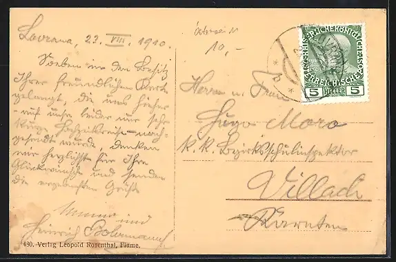 alte Ansichtskarte, gelaufen 1910, guter Zustand