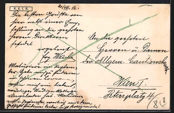 gelaufen 1912, Briefmarke entfernt, guter Zustand