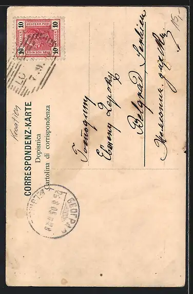 alte Ansichtskarte, gelaufen 1905, Randschaden li. Mitte, Eckknick oben re., guter Zustand
