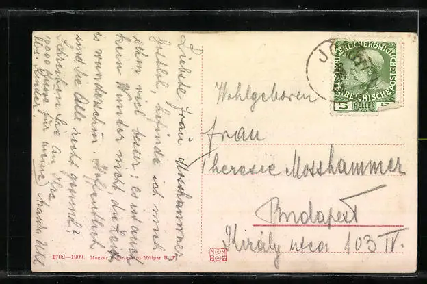 Personenbezogene Daten auf der Rückseite der Karte wurden durch blauen Textmarker unkenntlich gemacht. Die blauen Stellen sind auf die Vorderseite durchgeweicht und wirken sich negativ auf das Postkartenfoto aus