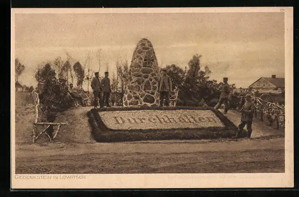 AK Lowitsch, Gedenkstein ermahnt zum Durchhalten