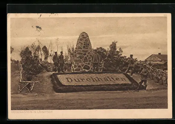 AK Lowitsch, Gedenkstein ermahnt zum Durchhalten