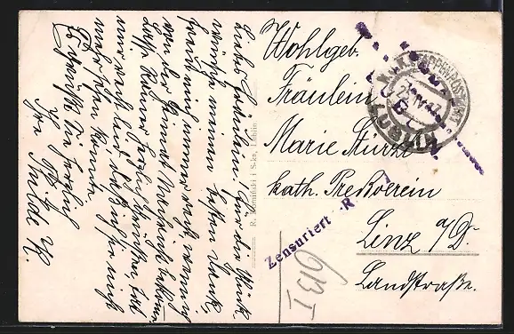 alte Ansichtskarte, gelaufen 1917, Eckknick oben re., guter Zustand