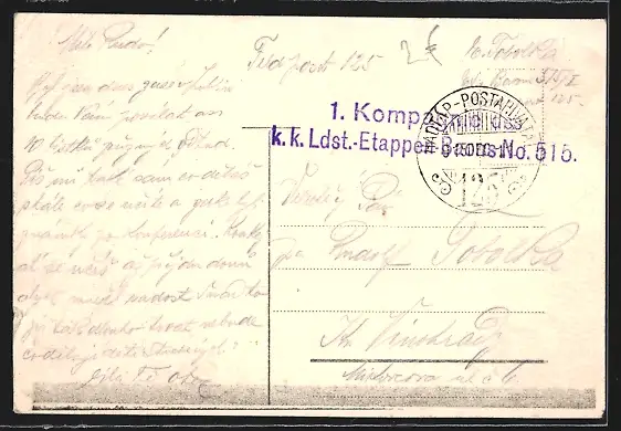 Personenbezogene Daten auf der Rückseite der Karte wurden durch blauen Textmarker unkenntlich gemacht. Die blauen Stellen sind auf die Vorderseite durchgeweicht und wirken sich negativ auf das Postkartenfoto aus