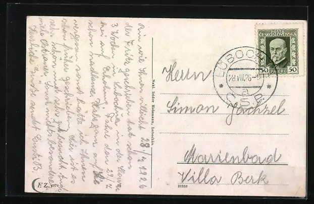 gelaufen 1926, Eckknick unten li., guter Zustand