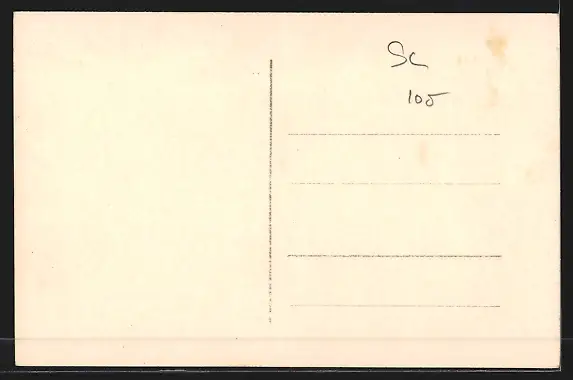 Personenbezogene Daten auf der Rückseite der Karte wurden durch blauen Textmarker unkenntlich gemacht. Die blauen Stellen sind auf die Vorderseite durchgeweicht und wirken sich negativ auf das Postkartenfoto aus