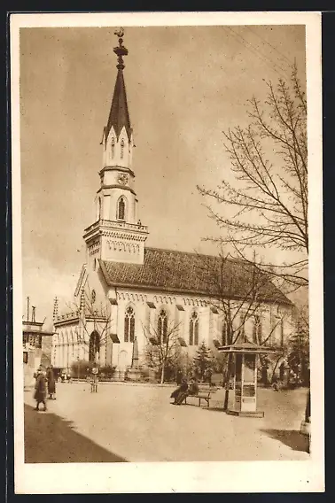 AK Lucenec, Kirche mit Passanten