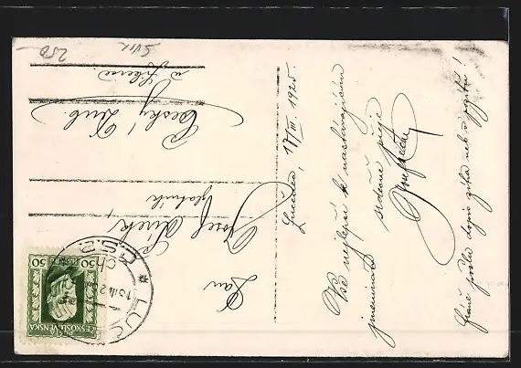 gelaufen 1925, Eckknicke oben li. u. unten re., Einriss u. Bugspur li. unten, guter Zustand