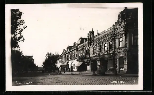 AK Lucenec /Losonc, Strassenpartie mit Litfasssäule