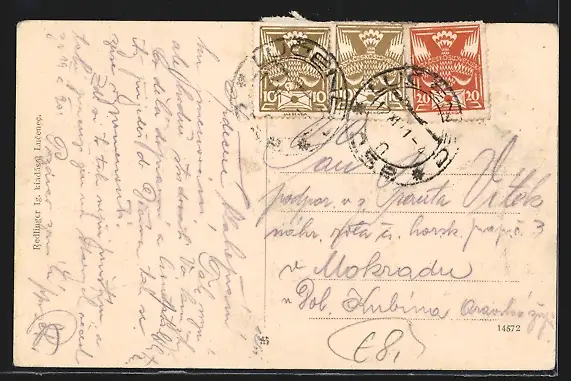 alte Ansichtskarte, gelaufen, Knick mittig waagerecht