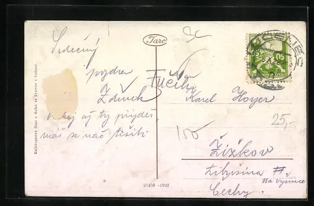 alte Ansichtskarte, gelaufen 1922, rückseitig Oberflächenschaden, Eckknick li. oben, guter Zustand