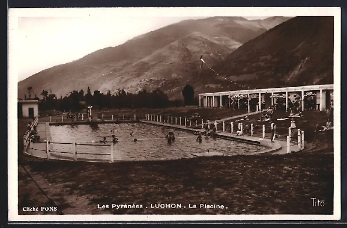 AK Luchon /Les Pyrénées, La Piscine avec vue sur les montagnes des Pyrénées