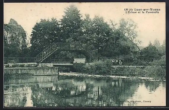 AK Lucy-sur-Yonne, L`Écluse et la Passerelle
