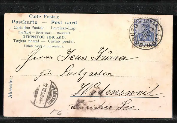 alte Ansichtskarte, gelaufen 1903, guter Zustand