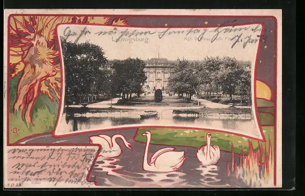 AK Ludwigsburg, Königliches Schloss, südl. Front
