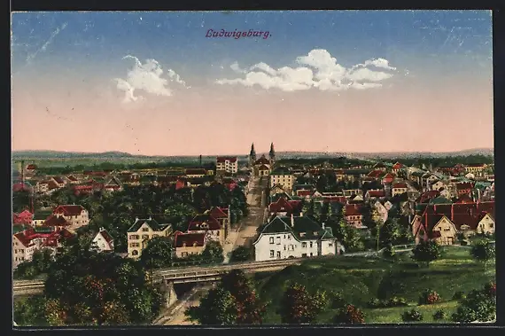 AK Ludwigsburg, Ortsansicht mit Blick in die Ferne