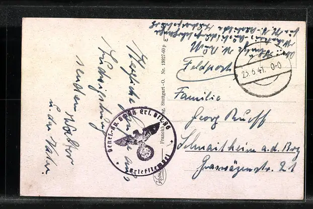 alte Ansichtskarte, gelaufen 1941 als Feldpost, guter Zustand