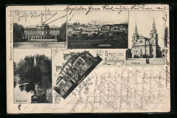 AK Ludwigsburg, Schloss Monrepos und Stadtkirche