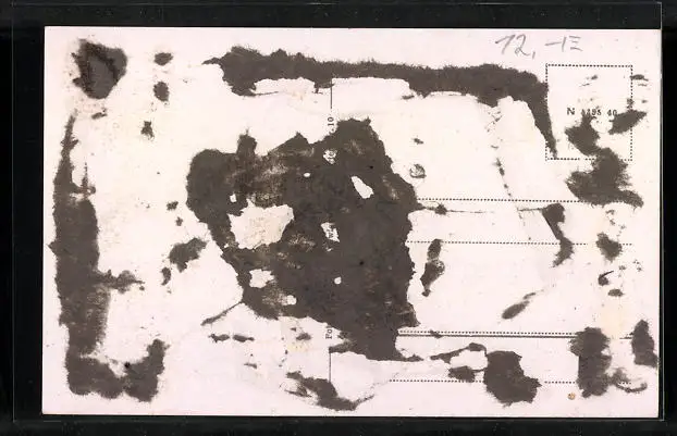 Personenbezogene Daten auf der Rückseite der Karte wurden durch blauen Textmarker unkenntlich gemacht. Die blauen Stellen sind auf die Vorderseite durchgeweicht und wirken sich negativ auf das Postkartenfoto aus