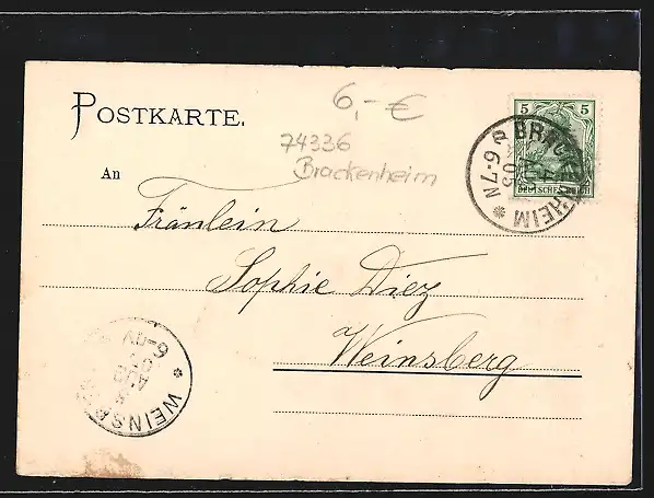 alte Ansichtskarte, gelaufen 1905, Kanten bestoßen, guter Zustand
