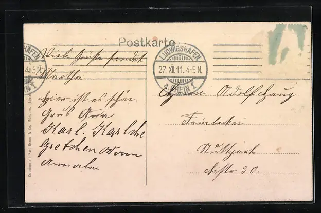alte Ansichtskarte, gelaufen 1911, Briefmarke entfernt, rückseitig Klebe- und Papierreste, guter Zustand