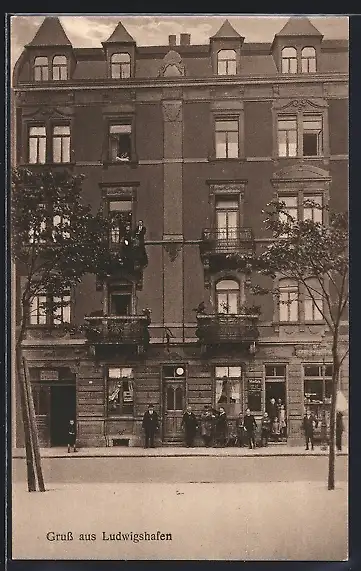 AK Ludwigshafen, Strassenpartie mit Geschäften