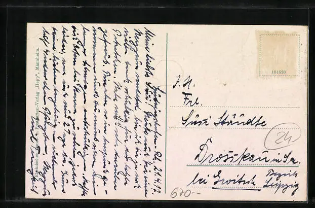 alte Ansichtskarte, ungelaufen, Briefmarke entfernt, guter Zustand
