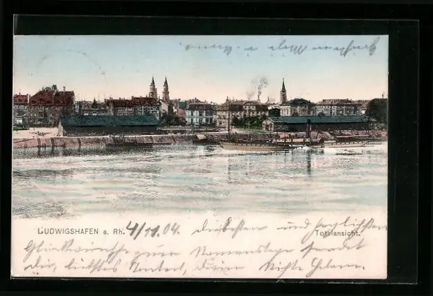 AK Ludwigshafen a. Rh., Totalansicht mit Dampfer