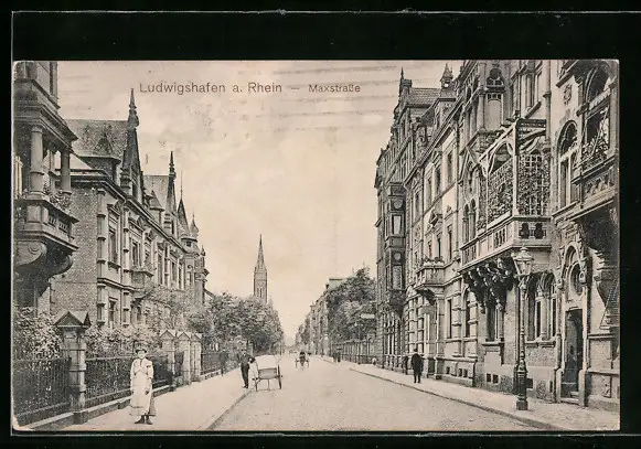 AK Ludwigshafen a. Rhein, Maxstrasse mit Kirche