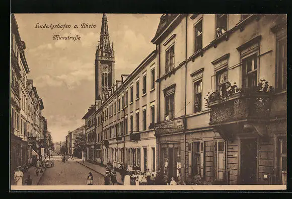 AK Ludwigshafen a. Rhein, Maxstrasse mit Kirchturm aus der Vogelschau