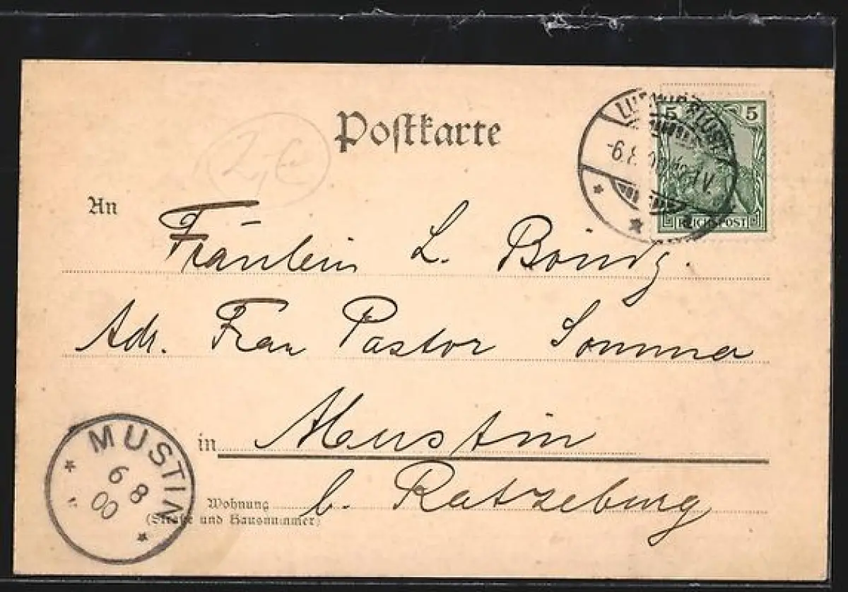 alte Ansichtskarte, gelaufen 1900, guter Zustand