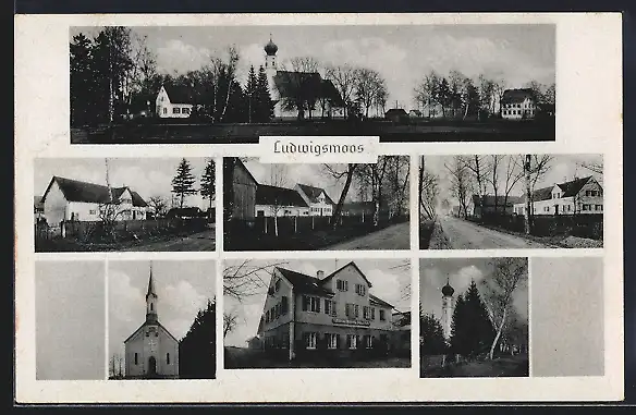 AK Ludwigsmoos, Gasthaus, Strassenpartie, Kirche