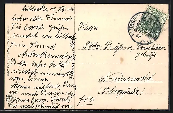 alte Ansichtskarte, gelaufen 1912, guter Zustand