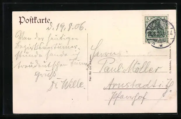 alte Ansichtskarte, gelaufen 1906, guter Zustand