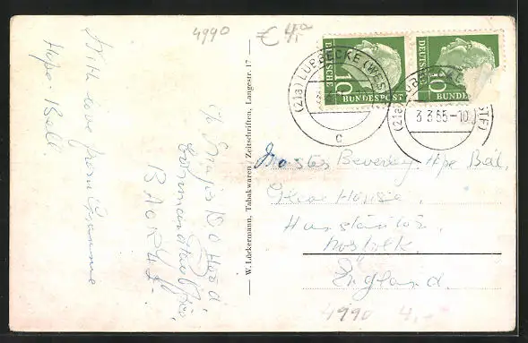 gelaufen 1955, Eckknicke links u. rechts, guter Zustand