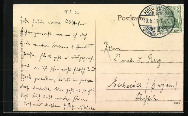 gelaufen 1911, Stempelspur, guter Zustand