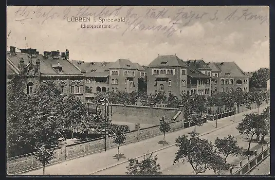 AK Lübben i. Spreewald, Idiotenanstalt und Strassenpartie